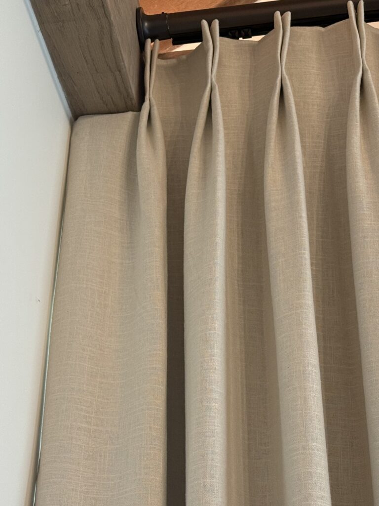 The blackout draperies, fabricated in a linen blend, offered greater stability and predictability, allowing us to balance performance with aesthetics. Each treatment was dressed deliberately so pleats settled properly, hems hung true, and the finished rooms felt calm and composed the moment guests walked in. That level of finish doesn’t happen by accident — and it doesn’t happen quickly.